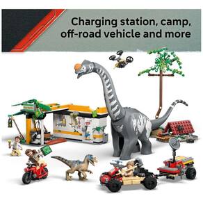 LEGO - Jurassic World Raptor & Titanosaurus Tracking Mission 76973 Embarque em uma expedição pré-histórica com a missão de rastreamento LEGO Jurassic World Raptor & Titanosaurus 76973 . Este brinquedo de construção para crianças de 7 anos ou mais leva jovens manipuladores de dinossauros ao coração de Jurassic World: Rebirth. As crianças constroem uma operação completa de rastreamento de dinossauros com duas figuras temíveis de dinossauros: um Velociraptor com uma mandíbula aberta e um enorme Titanossauro com cabeça, pescoço e cauda móveis. Três minifiguras incluídas Zora Bennett, Martin Krebs e Dr. Henry Loomis estão equipadas com ferramentas para rastrear e estudar os incríveis dinossauros. Jovens construtores ajudam os pesquisadores a montar seu local de aventura, que inclui uma estação de carregamento, um campo de pesquisa com uma árvore caindo e um veículo off-road com um trailer, uma motocicleta e um drone montável para vigilância aérea de dinossauros. Perfeito como presente de aniversário ou a qualquer momento para meninos e meninas que amam dinossauros e fingem brincar, este conjunto cria infinitas possibilidades de contar histórias. O aplicativo LEGO Builder aprimora a experiência de construção com instruções 3D intuitivas. Contém 582 peças.