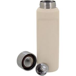 Especificações: Parede dupla de aço inox que a torna durável; Filtro em aço inox que permite a infusão de diversos tipos de chás e a separação de sólidos; Tampa do tipo rosca que é hermética por possuir um anel de silicone; Propriedades: Mantém a temperatura das bebidas geladas por aproximadamente 10h; Mantém a temperatura das bebidas quentes por aproximadamente 4h.