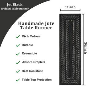 - CORREDOR TRANÇADO COM DESIGN MULTICOLORIDO: adicione variedade e interesse à sua mesa com este corredor trançado que tem um design multicolorido. Este tapete é preto azeviche, mas com toques sutis de marrom e cinza, dando-lhe uma aparência mesclada. Os fios são tingidos a uma temperatura mais alta para obter cores mais ricas e uniformes, para que você possa apreciar a nuance e a profundidade de cada tonalidade. Este tapete tem 11 x 36 polegadas, o que é perfeito para uma mesa padrão.