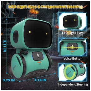 O Robô ATRobot é um companheiro de diversão incrível para crianças! Ele pode ser controlado por voz e toque, se movimenta para frente, para trás, vira à esquerda, à direita e faz giros de 360 graus. Além disso, ele canta, dança e conversa com as crianças. Com modos de trabalho, gravação e descanso, o ATRobot pode gravar até 3 mensagens de voz de 8 segundos cada. Ele reconhece comandos de voz e responde de forma inteligente, desligando ao ouvir 'adeus, dormir' e ligando novamente com um simples toque. Com olhos de LED, ele não apenas fala a língua dos robôs, mas também repete tudo o que a criança diz, incentivando a pronúncia e exercitando as habilidades de linguagem. Com um tamanho inteligente de 10 x 9,5 x 13 cm, é um presente ideal para crianças de 3 a 9 anos de idade, podendo ser levado e utilizado em qualquer lugar.