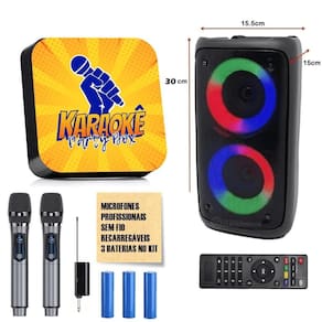 BENEFÍCIOS: - Música Ambiente Para sua festa não parar - Digite o Número Da Música e Cante Procure pela música desejada no Catálogo, digite no Karaokê, aperte OK no controle remoto e cante - Contagem Regressiva de 5 Segundos Personalizada Após selecionar a música - Lista De Espera Você pode adicionar até 5 músicas na lista de espera - Pontuação Após cantar receberá sua nota - Adicione Músicas Caso não tenha a música que deseja, você mesmo a poderá adicionar ÍTENS INCLUSOS: - 1 Karaokê Party Box - 1 Caixa de Som pequena 30cm altura + 15cm largura + 15cm espessura 200w potência, 20w subwoofer Com Bluetooth, função rádio, entrada usb, cartão sd e auxiliar p2 - 2 Microfones Sem Fio Com - 1 Controle Remoto - 1 Cabo HDMI - 1 Fonte Bivolt 110v/220v - 1 Cabo de áudio - 1 Pendrive - 1 Catálogo de Músicas Impresso DÚVIDAS FREQUENTES: Tem pontuação R: Sim, fictícia. É possível adicionar músicas R: Sim. Qual a voltagem R: Bivolt 110v/220v R: 3 meses. Precisa de Internet R: Não. Compatibilidade Funciona em Tv, monitor e projetor basta conectar na entrada hdmi OBS: Após a compra passaremos nosso contato e daremos todo suporte necessário Homologação Anatel: 112572013224 Marca: Não Informado