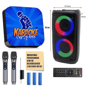 BENEFÍCIOS: - Música Ambiente Para sua festa não parar - Digite o Número Da Música e Cante Procure pela música desejada no Catálogo, digite no Karaokê, aperte OK no controle remoto e cante - Contagem Regressiva de 5 Segundos Personalizada Após selecionar a música - Lista De Espera Você pode adicionar até 5 músicas na lista de espera - Pontuação Após cantar receberá sua nota - Adicione Músicas Caso não tenha a música que deseja, você mesmo a poderá adicionar ÍTENS INCLUSOS: - 1 Karaokê Party Box - 1 Caixa de Som pequena 30cm altura + 15cm largura + 15cm espessura 200w potência, 20w subwoofer Com Bluetooth, função rádio, entrada usb, cartão sd e auxiliar p2 - 2 Microfones Sem Fio Com - 1 Controle Remoto - 1 Cabo HDMI - 1 Fonte Bivolt 110v/220v - 1 Cabo de áudio - 1 Pendrive - 1 Catálogo de Músicas Impresso DÚVIDAS FREQUENTES: Tem pontuação R: Sim, fictícia. É possível adicionar músicas R: Sim. Qual a voltagem R: Bivolt 110v/220v R: 3 meses. Precisa de Internet R: Não. Compatibilidade Funciona em Tv, monitor e projetor basta conectar na entrada hdmi OBS: Após a compra passaremos nosso contato e daremos todo suporte necessário Homologação Anatel: 112572013224 Marca: Não Informado