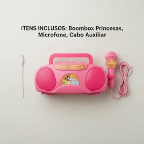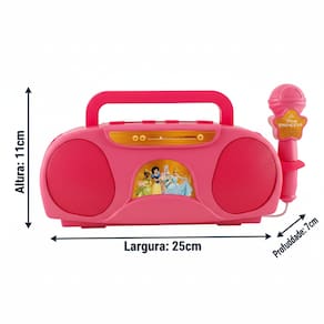 4. Conteúdo da embalagem ? 1 Boombox com tema Princesas ? 1 Microfone infantil