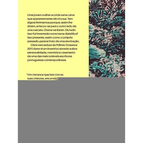 Romance português vencedor do Prêmio Oceanos 2017. Uma engenhosa trama sobre personalidade, memória e casamento de uma das mais notáveis escritoras portuguesas contemporâneas. Uma mulher prestes a fazer 25 anos acorda numa cama que não reconhece, numa casa que não lhe parece íntima, entre pessoas que a conhecem mas afirmam entender sua confusão momentânea. Chama-se – ou pelo menos é como a chamam – Karen. Ela é casada com um escritor de família arruinada, está com alguns ferimentos porque, assim lhe dizem, arriscou-se para o outro lado escorregadio e pedregoso de uma cascata. Seu presente, assim com o próprio passado, parecem fruto de uma alucinação