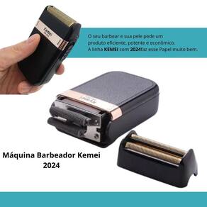 Descrição do anúncio: Barbeador elétrico kemei 2024 bivolt recarregável Agora você pode ficar sempre com a barba perfeita com o barbeador portátil de lâmina dupla kemei. Ideal para pessoas que têm alergia a lâminas tradicionais como gillette ou navalhas, o kemei 2024 oferece um método de barbear menos agressivo e sem irritação. Este shaver é recarregável via usb, levando 8 horas para uma carga completa e oferecendo 60 minutos de uso contínuo. Com suas duas lâminas, ele proporciona um corte mais rápido e eficiente. Importante: para melhores resultados, utilize uma máquina zero antes de usar o shaver em pelos curtos.