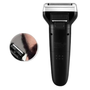 - marca: kemei - modelo número: km-6558 - alimentação: recarregável - característica: lâmina dupla - utilização: corpo, barba, bigode, cabelo, nariz e orelhas. - tempo de uso: até 60 minutos - tempo de carga: 8 horas - tensão: 110-220v - potencia nominal: 3w - material: abs + stainless steel - tamanho: 16cm x 3cm - tipo de item: barbeador elétrico, aparador de pelos e cortador de cabelos