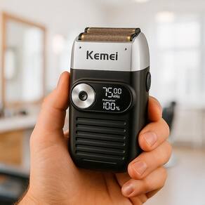 Marca: Kemei Modelo: KM-2026 Cor: Preto Voltagem: 110V/240V Sem fio: Sim Apto para viagem: Sim Com display digital: Sim Silencioso: Sim Função principal: Barbeador Tipo de alimentação: USB Materiais das lâminas: Aço inoxidável Potência: 5 W Inclui bateria recarregável: Sim Tempo de funcionamento: 120 m Tempo de carregamento: 2 h Acessórios incluídos: 1 cabo de carga, 1 escova de limpeza, 1 manual, 1 capa. Marca: Não Informado