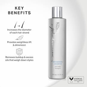 Kenra Platinum Thickening Shampoo é um limpador suave que aumenta o diâmetro do cabelo, eliminando o acúmulo e o excesso de óleos que podem pesar os estilos. Este shampoo dá a aparência de cabelo grosso, adicionando corpo e plenitude aos estilos para elevação e dimensão sem peso. Aumenta o diâmetro de cada fio de cabelo Proporciona elevação e dimensão sem peso Remove o acúmulo e o excesso de óleos que pesam sobre os estilos Seguro para cores Formulado sem adição de sulfatos, parabenos e cloreto de sódio