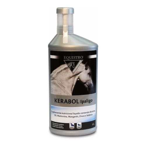 Kerabol Equistro - 1 Litro Suplemento nutricional líquido contendo Biotina, DL-Metionina, Manganês, Zinco e Selênio (na forma orgânica - IPALIGO), elementos essenciais que estimulam a produção de queratina. Equistro Kerabol Ipaligo possui nutrientes na forma líquida e biologicamente ativa com elevada biodisponibilidade e eficiência