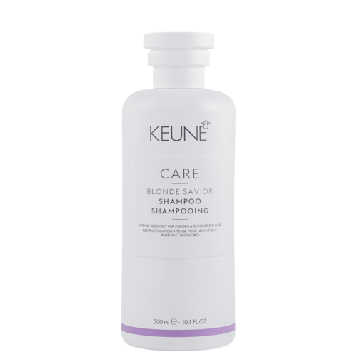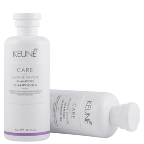 Shampoo para cabelos danificados e descoloridos. Keune Care Blonde Savior recupera e fortalece os fios enquanto hidrata instantaneamente.