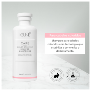 Shampoo para cabelos coloridos ou com mechas. Keune Care Color Brillianz evita o desbotamento para uma cor com brilho e intensidade.