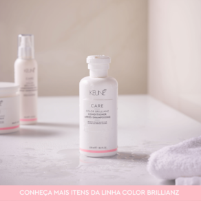 Condicionador para cabelos coloridos. Condicionador Keune Collor Brillianz evita o desbotamento e estabiliza a cor. O cabelo fica pigmentado e luminoso por mais tempo. A fórmula complexa de Condicionador Keune Collor Brillianz oferece o cuidado extra que o cabelo colorido exige. Com ingredientes específicos de fixação e estabilização, cria uma barreira ao redor do fio e que mantém a cor por mais tempo. Proporciona brilho, nutrição e proteção contra os danos causados pelo sol, sem pesar. O cabelo fica protegido e com cor luminosa por mais tempo!