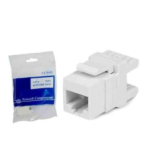 Keystone Jack Cat6 Rj45 Branco Seccon Descrição: Keystone RJ45 (08x08) Cat.6, fêmea 180 Padrão de crimpagem: 568A e 568B Tampa traseira cor cristal transparente. Embalagem: Saco plástico para pendurar contendo uma peça. Matéria Prima: Corpo de plástico: Policarbonato Terminal interno: Cobre revestido de estanho Terminal IDC: Cobre revestido de estanho