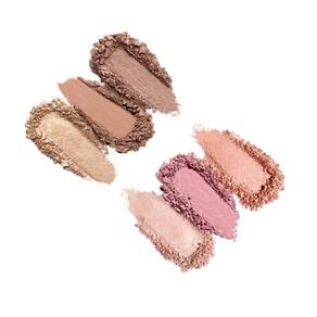 Contém 3 pós de rosto diferentes (bronzer, blush e iluminador) com dois acabamentos diferentes, matte e metálico