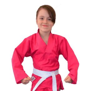 Kimono feito todo em sarja com modelagem báscia que pode ser utilizado em várias modalidades como Judo, Jiu Jitsu ou Karatê. Ideal para crianças que estão começando nas artes marcias. Acompanha faixa. A forma de lavar e secar seu kimono é muito importante para aumentar a sua durabilidade. Seguem algumas dicas importantes: lave a mão com água fria, nunca use alvejantes e seque a sombra. O sol pode danificar as fibras e a secadora pode encolher demais seu kimono. Use sabão de coco ou neutro.