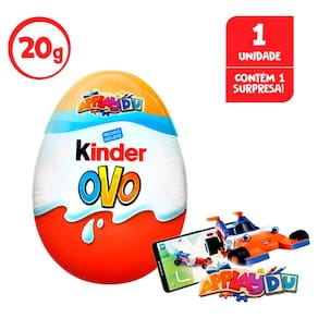 Kinder Ovo Laranja Kinder Ovo é ovinho de chocolate com uma combinação perfeita de um saboroso chocolate Kinder elaborado com qualidade e uma surpresa sempre diferente que ganha vida no app Applaydu.