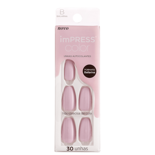 Unhas postiças autocolantes. Kiss New York Impress Color Bailarina não necessita do uso de cola, promovendo unhas mais belas por até 7 dias.