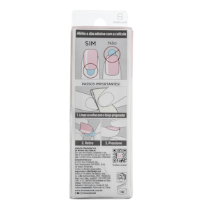 Abra a embalagem e comece selecionando os tamanhos ideais para as suas 10 unhas (caso esteja em dúvida, opte pela opção de menor tamanho). Utilize o lenço preparatório incluso para limpar quaisquer resíduos e garantir uma melhor aderência. Alinhe a aba adesiva à cutícula e, em seguida, retire a película protetora, pressionando firmemente, do meio para os lados.