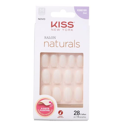 Unhas postiças com acabamento natural. Moldáveis e flexíveis, Kiss New York Salon Naturals Oval Médio se encaixam perfeitamente nas mãos. Resultado lindo e da maneira que você deseja sem dificuldade.