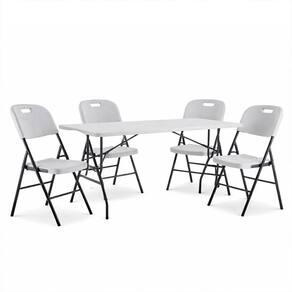 Ideal para uso interno e externo, o kit e perfeito para eventos esportivos, acampamentos e piqueniques, alem do uso diario em casa. Seu mecanismo de dobragem e rapido e facil, permitindo que seja desdobrado em segundos para uso imediato. Quando dobrado, reduz-se a um tamanho compacto para facilitar o e o armazenamento. A estrutura de aco solida e duravel garante resistencia e confiabilidade para uso a longo prazo. As cadeiras possuem um encosto curvo e um assento ergonomico, que adaptam-se perfeitamente ao formato do corpo, oferecendo excelente suporte e conforto mesmo durante longos periodos, ajudando a prevenir dores nas costas e outros desconfortos. Alem disso, sua resistencia a diversas condicoes climaticas e impactos garante uma longa vida util com manutencao minima.