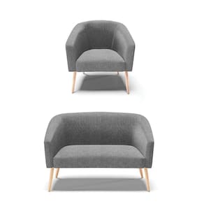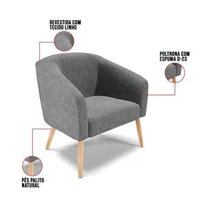 Kit 01 Namoradeira 02 Lugares E 01 Poltrona Stella Linho Pés Palito Natural - D'rossi Cor A26 Grafite