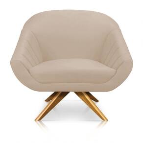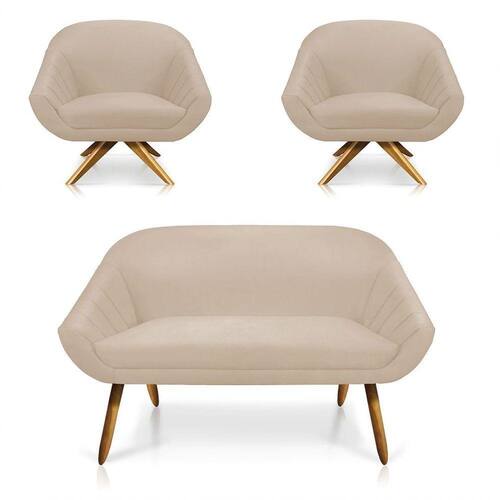 Kit 01 Namoradeira 02 Lugares E 02 Poltronas Giratória Giovana Suede Bege Base Madeira Ma30 - D'rossi