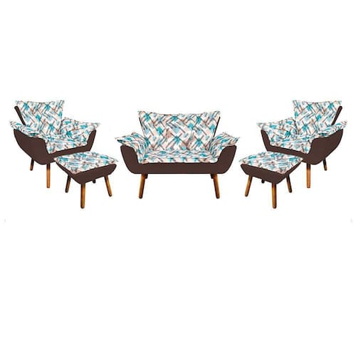 Chegou para vocês o Kit 01 Namoradeira com 02 Poltronas e 02 Puffs Opala! Sua neutralidade permite que você tenha total liberdade para combinar com as cores que quiser, criando um visual exclusivo e original. O seu interior é estruturado em madeira reflorestada de eucalipto e sua base é de MDF reforçada, com pés de madeira, já no encosto é utilizado no a espuma D-23, revestidos em um tecido de ótima qualidade. Ao escolher a maravilhosa Opala você permite causar boas impressões, fazendo seu próprio estilo! Sendo feita a junção desses móveis, ficará incrível qualquer lugar em que escolher colocá-los! Não fique por fora dessa oportunidade única de ter o Kit Opala em sua casa! Dimensões da Namoradeira Altura total: 91 cm Largura total: 128 cm Profundidade total: 62 cm Altura do encosto: 48 cm Largura do assento: 88 cm Profundidade do assento: 46 cm Altura do chão ao assento: 47 cm Espessura do assento: 17 cm Tamanho dos pés: 30 cm Altura do chão ao braço: 65 cm Altura interna do braço: 18 cm Espessura do braço: 20 cm Peso: 22 kg Dimensões da Poltrona Altura total: 91 cm Largura total: 80 cm Profundidade total: 67 cm Altura do encosto: 46 cm Largura do assento: 40 cm Profundidade do assento: 46 cm Altura do chão ao assento: 46 cm Espessura do assento: 16 cm Tamanho dos pés: 30 cm Altura do chão ao braço: 63 cm Altura interna do braço: 23 cm Espessura do braço: 20 cm Peso: 14 kg Dimensões do Puff Altura: 45 cm Largura: 50 cm Profundidade: 40 cm Peso: 5 KG Especificações do Produto Estrutura da Poltrona: Madeira Eucalipto Tecido: Suede (100% Poliéster) Estampado (100% Poliéster) Tipo de pés: Palito de Madeira Peso Suportado: Namoradeira até 240 Kg, a Poltrona e Puff até 120 Kg Garantia: 90 dias contra defeito de fabricação Montagem: O produto vai montado, apenas rosquear os pés. Instruções de Limpeza: Utilizar um pano limpo e seco Você irá receber: 05 volumes Observações Relevantes