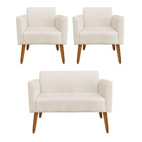 Kit 01 Namoradeira e 02 Poltronas Marisa Suede Bege Pés Palito Castanho D'Rossi
