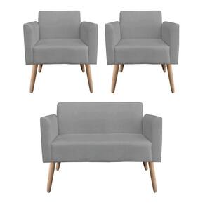 Kit 01 Namoradeira e 02 Poltronas Marisa Suede Grafite Pés Palito Natural D'Rossi