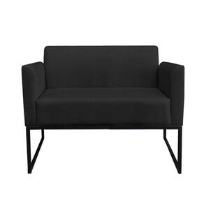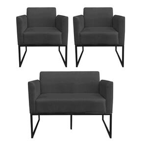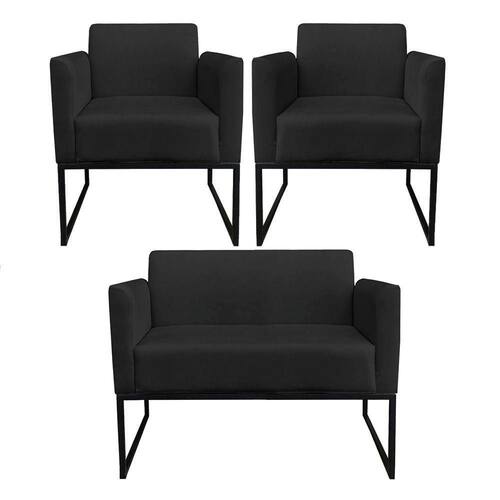 Kit 01 Namoradeira e 02 Poltronas Marisa Suede Preto Base Industrial Metálica Preto D'Rossi