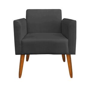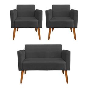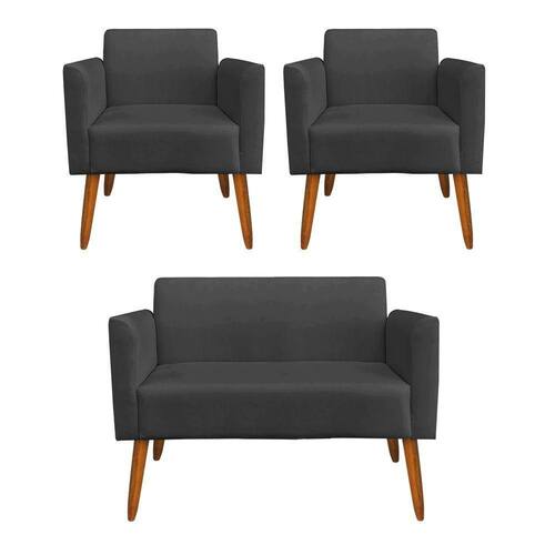 Kit 01 Namoradeira e 02 Poltronas Marisa Suede Preto Pés Palito Castanho D'Rossi