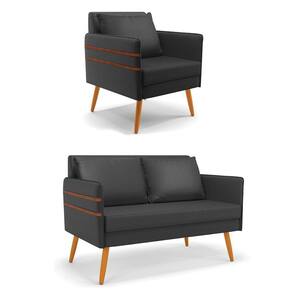 Que tal o kit Namoradeira e Poltrona Mari? Imagine-se utilizando esse kit e usufruindo de todos os benefícios que ele oferece. Pode ser utilizado para evidenciar e enriquecer o seu ambiente, descansar depois de um dia longo de trabalho, ver aquela série favorita ou simplesmente ler seu livro predileto. A estrutura deste conjunto é confeccionada em madeira de eucalipto proveniente de reflorestamento, suportando em média até 120 Kg, possuí pés palito castanho, garantindo uma maior resistência e durabilidade ao produto, o estofamento do assento e encosto é composto de espuma D-23, revestido em tecido Corino no tom Preto. Então, se a sua dificuldade é a otimização de espaço, este Kit além de confortável e sofisticado, traz toda a funcionalidade que você precisa. Apenas alguns conjuntos estão disponíveis, separe o seu Kit 01 Namoradeira e 01 Poltrona Mari antes que acabem! Dimensões da Namoradeira: Altura total: 82 cm Largura total: 110 cm Profundidade total: 74 cm Altura do encosto: 35 cm Largura do assento: 104 cm Profundidade do assento: 57 cm Altura do chão ao assento: 47 cm Espessura do assento: 22 cm Altura do chão ao braço: 46 cm Altura interna do braço: 19 cm Tamanho dos pés: 25 cm Espessura do braço: 4 cm Peso: 20 kg Dimensões da Poltrona: Altura total: 82 cm Largura total: 63 cm Profundidade total: 74 cm Altura do encosto: 51 cm Largura do assento: 54 cm Profundidade do assento: 57 cm Altura do chão ao assento: 47 cm Espessura do assento: 22 cm Altura do chão ao braço: 46 cm Altura interna do braço: 19 cm Tamanho dos pés: 25 cm Espessura do braço: 4 cm Peso: 15 kg Dimensões da Almofada: Altura total: 34 cm Largura total: 51 cm Profundidade total: 20 cm Peso: 0,3 kg Especificações do Produto Estrutura: Madeira Eucalipto Espuma: D-23 Tecido: Corino Tipo de pés: Pés Palito Castanho Peso suportado: Até 120 Kg Garantia: 90 dias contra defeito de fabricação Montagem: O produto vai montado, apenas rosquear os pés Instruções de limpeza: Utilizar um pano limpo e levemente úmido Você irá receber: 02 Volumes com 01 Namoradeira e 01 Poltrona Observações Relevantes - Todos os produtos vão embalados com total segurança; - As cores dos produtos podem sofrer alterações dependendo do seu monitor; - Para futuras compras, não garantimos a mesma tonalidade de cor, pois existe variação a cada lote do fabricante do tecido; - As imagens são meramente ilustrativas, não acompanham objetos de decoração e eletros; - Confira as dimensões do produto no momento da compra e certifique-se de que passará normalmente por escadas, elevadores, portas e corredores; - Importante: Por se tratar de estofado as medidas podem ter uma pequena variação em até 3 cm; - Não nos responsabilizamos no ato da entrega por montagens, desmontagens, instalações de produtos; - Não nos responsabilizamos no ato da entrega por subir escadas, elevadores, nem utilização de guinchos ou equipamentos similares para acesso a pisos superiores em apartamentos; - A entrega do produto é realizada em todo território nacional, até onde as rodovias alcançam, entregas fluviais ou aéreas devem ser cotadas a parte; - Observando as orientações acima, evita-se futuros desagrados ou imprevistos com a entrega do produto. Havendo despesas adicionais, serão de responsabilidade do cliente;