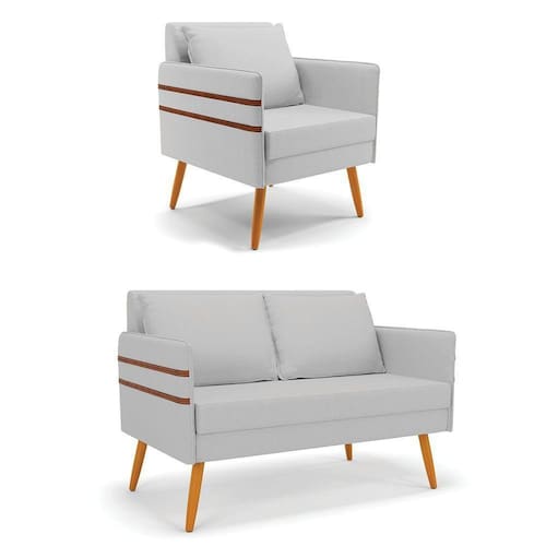 Que tal o kit Namoradeira e Poltrona Mari? Imagine-se utilizando esse kit e usufruindo de todos os benefícios que ele oferece. Pode ser utilizado para evidenciar e enriquecer o seu ambiente, descansar depois de um dia longo de trabalho, ver aquela série favorita ou simplesmente ler seu livro predileto. A estrutura deste conjunto é confeccionada em madeira de eucalipto proveniente de reflorestamento, suportando em média até 120 Kg, possuí pés palito castanho, garantindo uma maior resistência e durabilidade ao produto, o estofamento do assento e encosto é composto de espuma D-23, revestido em tecido Linho. Então, se a sua dificuldade é a otimização de espaço, este Kit além de confortável e sofisticado, traz toda a funcionalidade que você precisa. Apenas alguns conjuntos estão disponíveis, separe o seu Kit 01 Namoradeira e 01 Poltrona Mari antes que acabem!
