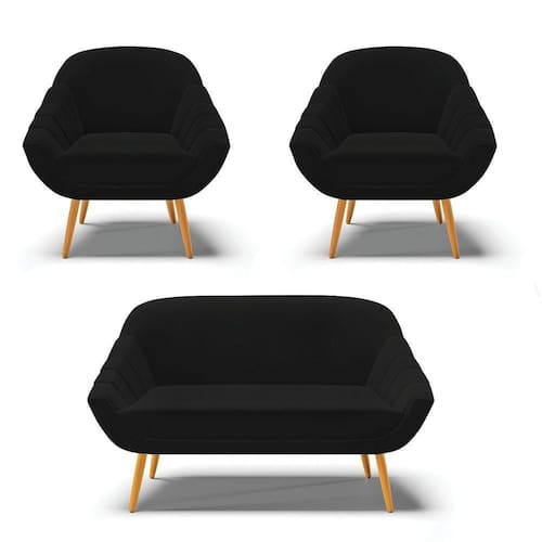 A poltrona Giovana é uma peça indispensável para momentos de descanso depois de um dia longo de trabalho. E não há nada melhor que poder relaxar em um móvel de extremo conforto não é mesmo! Afinal ela dará aquele toque de perfeição ao seu ambiente Ela conta com uma estrutura reforçada em madeira eucalipto que oferece alta resistência e qualidade ao móvel. Produzida com Pés Palito Castanho que suporta até 120kg, seu estofamento é com espuma de densidade D-23. A namoradeira 02 Lugares traz consigo um toque de delicadeza por conta do formato arredondado de seu encosto, garantindo além de muito conforto uma personalidade única para seu ambiente. Produzida em madeira reflorestada de eucalipto, estofada em Espuma D-23, os pés são em madeira garantindo uma maior resistência ao produto. Sua durabilidade e conforto é seu diferencial. Adquira já seu Kit 01 Namoradeira 02 Lugares e 02 Poltronas no tecido Linho no tom Preto.