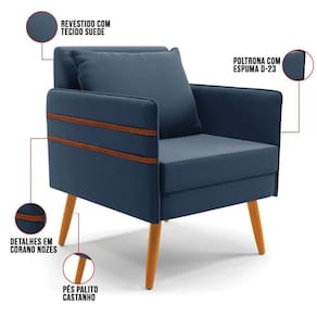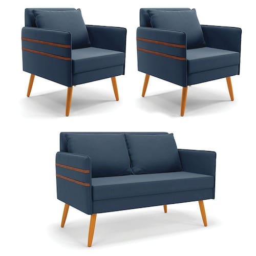 Kit 01 Namoradeira 02 Lugares E 02 Poltronas Mari Suede Pés Palito Castanho - D'rossi Cor Azul Marinho