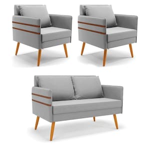 Kit 01 Namoradeira 02 Lugares E 02 Poltronas Mari Suede Pés Palito Castanho - D'rossi Cor Cinza