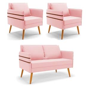 Kit 01 Namoradeira E 02 Poltronas Suede Castanho Rosa Bebê