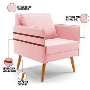 Kit 01 Namoradeira 02 Lugares E 02 Poltronas Mari Suede Pés Palito Castanho - D'rossi Cor Rosa Bebê