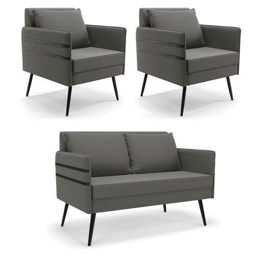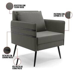 Que tal o kit Namoradeira e Poltrona Mari? Imagine-se utilizando esse kit e usufruindo de todos os benefícios que ele oferece. Pode ser utilizado para evidenciar e enriquecer o seu ambiente, descansar depois de um dia longo de trabalho, ver aquela série favorita ou simplesmente ler seu livro predileto. A estrutura deste conjunto é confeccionada em madeira de eucalipto proveniente de reflorestamento, suportando em média até 120 Kg, possuí Pés Palito de Ferro, garantindo uma maior resistência e durabilidade ao produto, o estofamento do assento e encosto é composto de espuma D-23, revestido em tecido Suede no tom Grafite. Então, se a sua dificuldade é a otimização de espaço, este Kit além de confortável e sofisticado, traz toda a funcionalidade que você precisa. Apenas alguns conjuntos estão disponíveis, separe o seu Kit 01 Namoradeira e 02 Poltronas Mari antes que acabem! Dimensões da Namoradeira: Altura total: 82 cm Largura total: 110 cm Profundidade total: 74 cm Altura do encosto: 35 cm Largura do assento: 104 cm Profundidade do assento: 57 cm Altura do chão ao assento: 47 cm Espessura do assento: 22 cm Altura do chão ao braço: 46 cm Altura interna do braço: 19 cm Tamanho dos pés: 25 cm Espessura do braço: 4 cm Peso: 20 kg Dimensões da Poltrona: Altura total: 82 cm Largura total: 63 cm Profundidade total: 74 cm Altura do encosto: 51 cm Largura do assento: 54 cm Profundidade do assento: 57 cm Altura do chão ao assento: 47 cm Espessura do assento: 22 cm Altura do chão ao braço: 46 cm Altura interna do braço: 19 cm Tamanho dos pés: 25 cm Espessura do braço: 4 cm Peso: 15 kg Dimensões da Almofada: Altura total: 34 cm Largura total: 51 cm Profundidade total: 20 cm Peso: 0,3 kg Especificações do Produto Estrutura: Madeira Eucalipto Espuma: D-23 Tecido: Suede Tipo de pés: Pés Palito de Ferro Peso suportado: Até 120 Kg Garantia: 90 dias contra defeito de fabricação Montagem: O produto vai montado, apenas rosquear os pés Instruções de limpeza: Utilizar um pano limpo e levemente úmido Você irá receber: 03 Volumes com 01 Namoradeira e 02 Poltronas Observações Relevantes - Todos os produtos vão embalados com total segurança; - As cores dos produtos podem sofrer alterações dependendo do seu monitor; - Para futuras compras, não garantimos a mesma tonalidade de cor, pois existe variação a cada lote do fabricante do tecido; - As imagens são meramente ilustrativas, não acompanham objetos de decoração e eletros; - Confira as dimensões do produto no momento da compra e certifique-se de que passará normalmente por escadas, elevadores, portas e corredores; - Importante: Por se tratar de estofado as medidas podem ter uma pequena variação em até 3 cm; - Não nos responsabilizamos no ato da entrega por montagens, desmontagens, instalações de produtos; - Não nos responsabilizamos no ato da entrega por subir escadas, elevadores, nem utilização de guinchos ou equipamentos similares para acesso a pisos superiores em apartamentos; - A entrega do produto é realizada em todo território nacional, até onde as rodovias alcançam, entregas fluviais ou aéreas devem ser cotadas a parte; - Observando as orientações acima, evita-se futuros desagrados ou imprevistos com a entrega do produto. Havendo despesas adicionais, serão de responsabilidade do cliente;