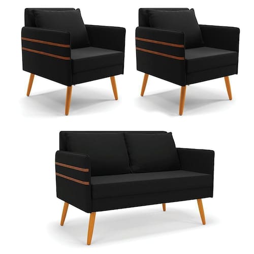 Que tal o kit Namoradeira e Poltrona Mari? Imagine-se utilizando esse kit e usufruindo de todos os benefícios que ele oferece. Pode ser utilizado para evidenciar e enriquecer o seu ambiente, descansar depois de um dia longo de trabalho, ver aquela série favorita ou simplesmente ler seu livro predileto. A estrutura deste conjunto é confeccionada em madeira de eucalipto proveniente de reflorestamento, suportando em média até 120 Kg, possuí pés palito castanho, garantindo uma maior resistência e durabilidade ao produto, o estofamento do assento e encosto é composto de espuma D-23, revestido em tecido Suede no tom Preto. Então, se a sua dificuldade é a otimização de espaço, este Kit além de confortável e sofisticado, traz toda a funcionalidade que você precisa. Apenas alguns conjuntos estão disponíveis, separe o seu Kit 01 Namoradeira e 02 Poltronas Mari antes que acabem!