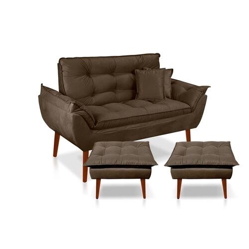 Kit 01 Namoradeira Opala 02 lugares + 02 Puff Opala + 02 Almofadas Suede Sala, Salão, recepção, quarto - Marrom