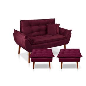 Kit 01 Namoradeira Opala 02 lugares + 02 Puff Opala + 02 Almofadas Suede Sala, Salão, recepção, quarto - Bordô