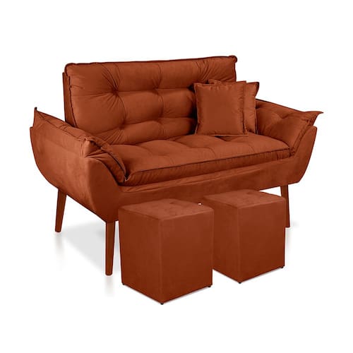 Estrutura: Madeira de Eucalipto; Revestimento: Suede; Assento: Fibra Siliconada percintas elásticas de 50mm; Encosto: Fibra Siliconada Modelo dos Pés: Redondo ; Material dos Pés: Pés Palito Quantidade de Pés: 4; Quantidade de Lugares: 2 Grampos: de aço galvanizados; Revestimento: Tecido Suede.