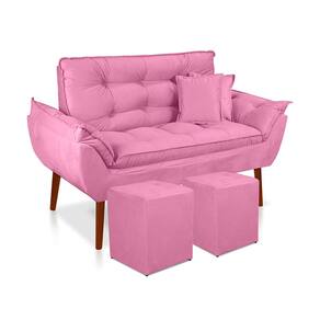 kit 01 Namoradeira Opala 02 lugares + 02 Puff quadrado + 02 Almofadas Suede Sala, Salão, recepção, quarto - Rosê
