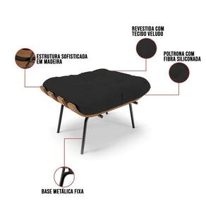Poltrona Costela, o nome se explica por si só não!? Seu design marcante remete às costelas do corpo humano, além de ser muito confortável. Uma peça perfeita para decorar sua sala de estar. Sua estrutura em metal, assento e encosto em madeira, as almofadas são super macias, em detalhes capitonê com fibra siliconada, revestido no tecido Veludo no tom Preto. Fala aí se não é perfeita para valorizar o seu espaço! Que tal deixar seu cantinho de descanso mais aconchegante e com muita elegância? Complete sua decoração, garanta o seu kit, uma poltrona e um puff. Lindo, né?