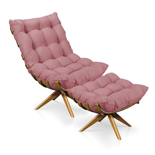 Kit 01 Poltrona E 01 Puff Giratório Costela Suede Base Madeira Ma25 D'rossi Cor Rose