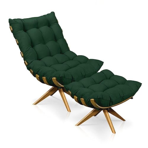Kit 01 Poltrona e 01 Puff Giratório Costela Base - Verde