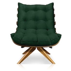 Kit 01 Poltrona E 01 Puff Giratório Costela Suede Base Madeira Ma25 D'rossi Cor Verde