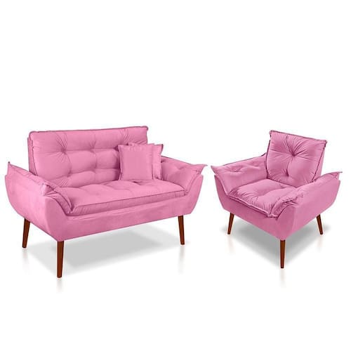 Kit 01 Poltrona Opala + 01 Namoradeira opala + 02 Almofadas Suede Rose -