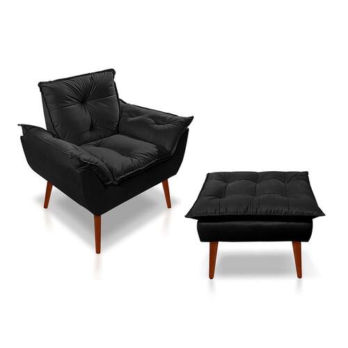 Kit 01 Poltrona Opala Decorativa + 01 Puff opala Suede - Preto